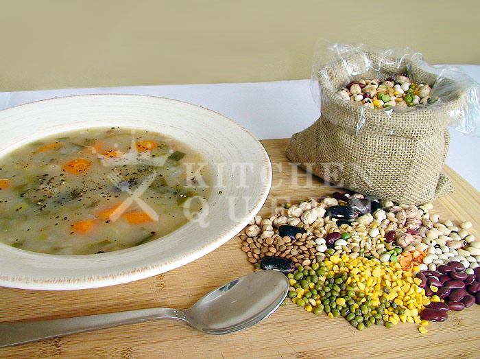 - 300 γραμμάρια ανάμικτα όσπρια (φακές κόκκινες, φακές ψιλές, ρεβύθια, φασόλια άσπρα, φασόλια κόκκινα, φασόλια μπαρμπούνια, φασόλια μαυρομάτικα, γίγαντες άσπροι, γίγαντες μαύροι, ροβίτσα, φάβα κίτρινη, φάβα πράσινη, σιτάρι )